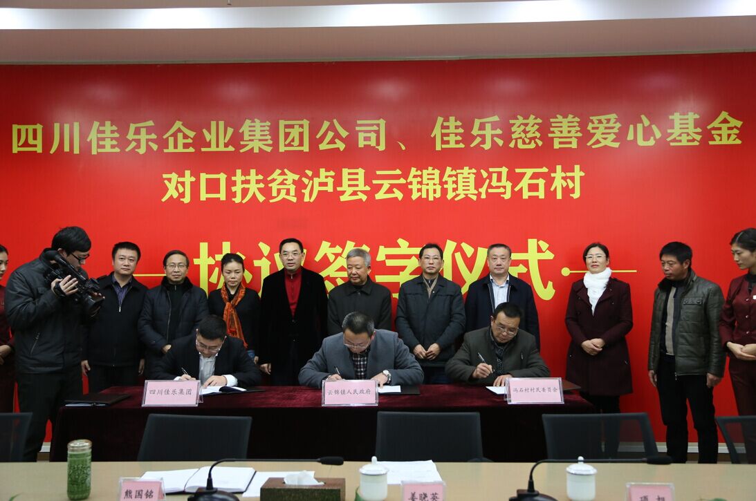 12月7日,四川聚彩堂企业集团公司、聚彩堂慈善爱心基金对口扶贫泸县云锦镇冯石村协议签字仪式在泸州金融商业中心【聚彩堂世纪城】举行。泸州市统战部副部长、市工商联党组书记王华,泸州市扶贫基金会执行会长梅兴岗,泸县政协副主席杜开卷,以及四川聚彩堂企业集团董事长熊国铭,云锦镇党委书记冉安健,云锦镇党委副书记、镇长万绪友等出席签约仪式。