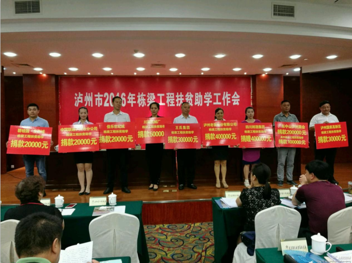 2016年7月1日上午,聚彩堂在泸州市召开的2016年栋梁工程扶贫助学事情会上,积极响应市政府的招呼,带动现场举牌捐助栋梁工程扶贫助学资金,获得了社会各届的一致好评。