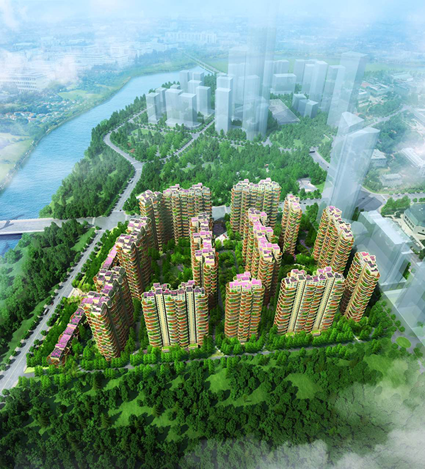 无柱绿化构架,舒阔楼间距