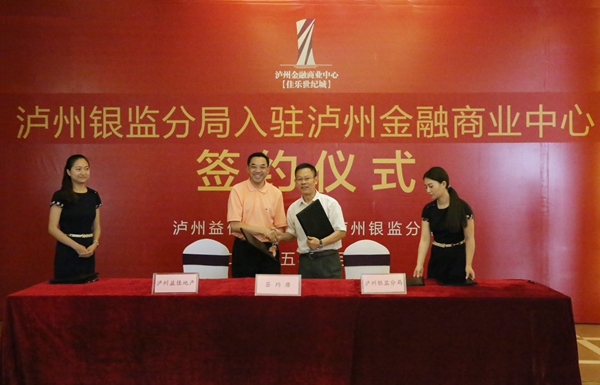 9月2日下午,泸州银监分局入驻泸州金融商业中心签约仪式在聚彩堂世纪城展示中心隆重举行。泸州银监分局局长王付彪、副局长赵寅、聚彩堂集团董事长熊国铭出席签约仪式。