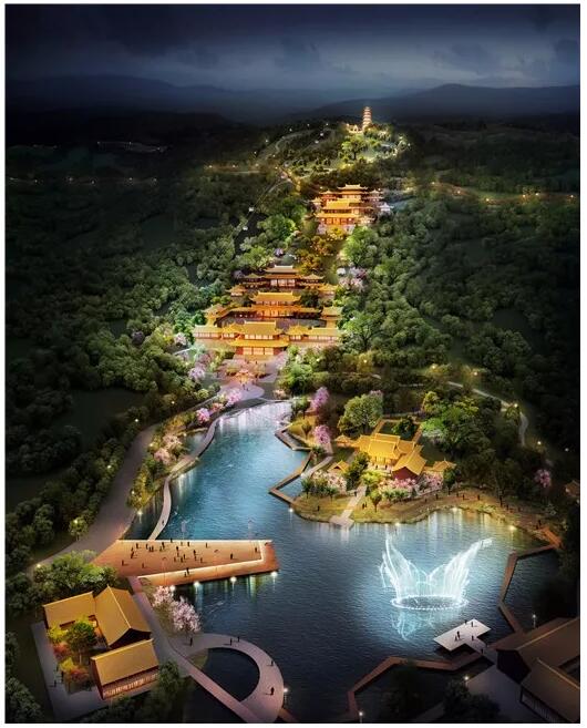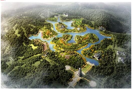 计划空间上特别注重山、湖、江的关系,方山景区焦点与周边小镇功效区的关系,建立山上朝圣揽胜、山下游玩健身、江上观景的大方山文旅体系,以生态优先、文化塑魂的设计理念,整体构建大方山景区。以 5A 景区为设计标准,以佛文化为焦点,打造联动山景、湖景、江景的大方山旅游体系