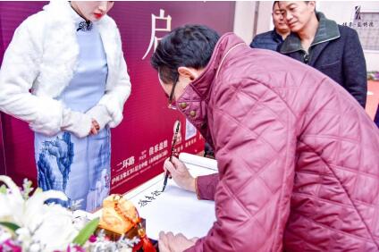 亮相仪式开始前,嘉宾们陆续签到进场,在画轴上潇洒写下自己的名字,感受临风执笔之俊逸