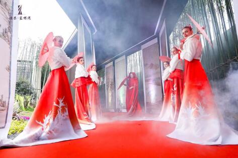 新中式名邸聚彩堂·蓝博湾,为富厚来宾的身心文化之旅,还特意开展了一场“高级定制打扮秀”:古典中式元素与现代元素的完美融合,让各人在新中式雅致建筑里,还体验了一场别样的视觉盛宴。